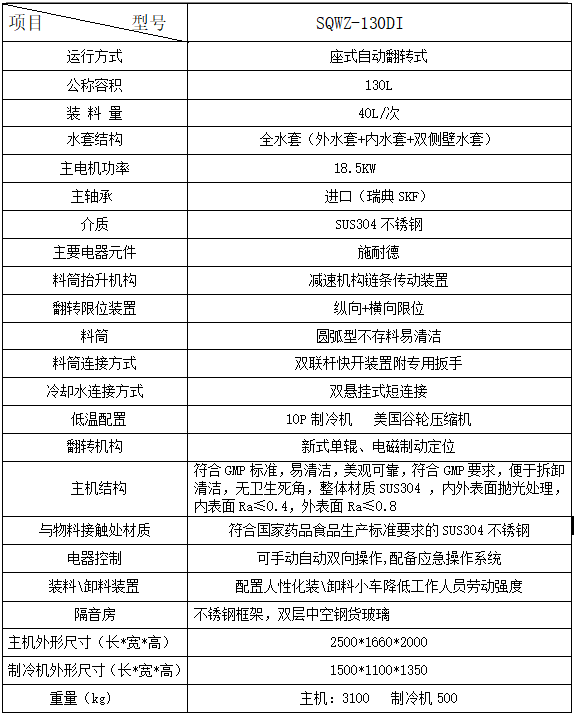 C、GMP设计:按GMP设计,采用符合国家药品、食品生产标准要求的304不锈钢制作,与物料接触部位为抛光不锈钢,内部边角圆弧过度,全密闭作业无粉尘污染、无物料损耗。